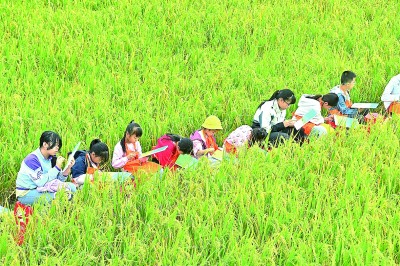小朋友在广西柳州市柳江区泗浪村的田间写生。新华社发
