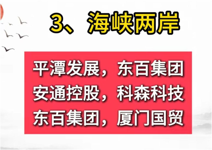 - 东百集团:可在商业零售领域参与两岸商业合作,拓展业务范围。