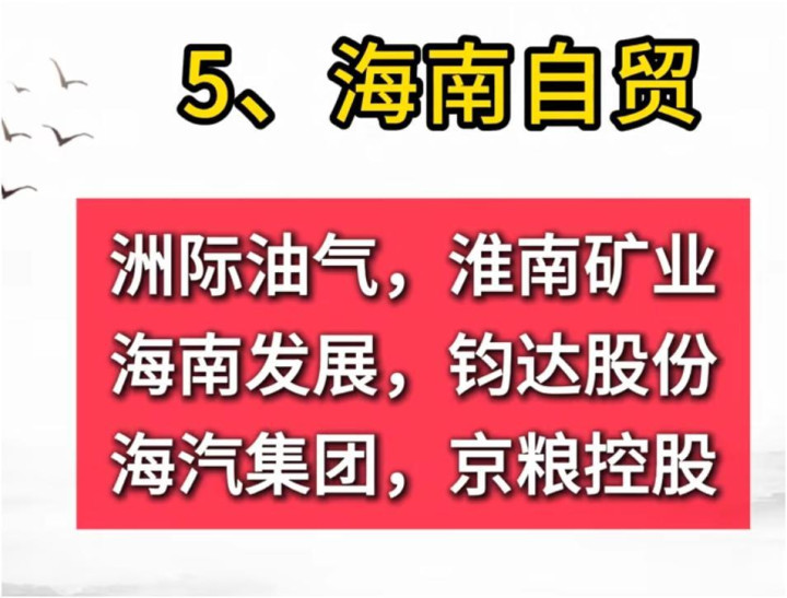 - 淮南矿业:或有在海南的业务拓展,参与海南产业建设。